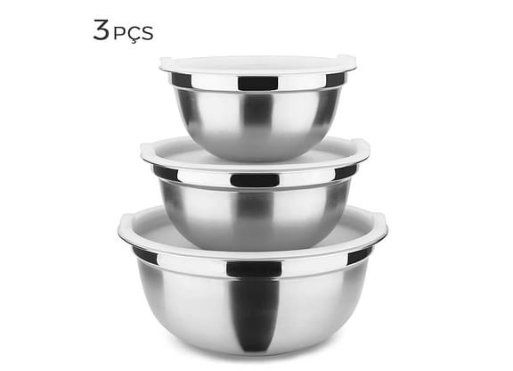 3 Bowl de aço inox com tampa