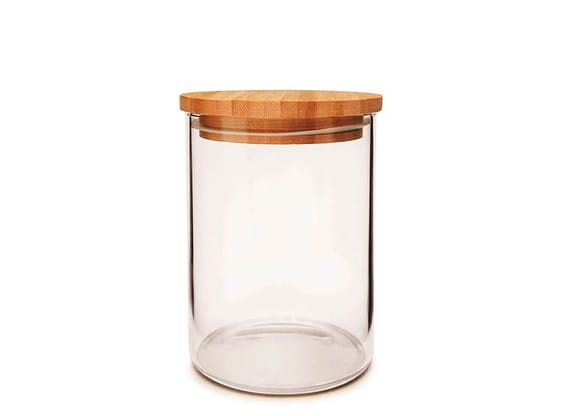 Pote de vidro com tampa de bambu